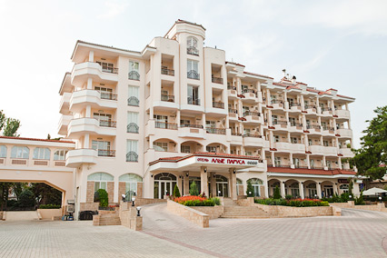 Все номера соответствуют европейским стандартам 4* и подходят для семейного и индивидуального проживания. Гостиница имеет развитую инфраструктуру. На крыше создан солярий с великолепным видом на море. На территории оборудован открытый бассейн с детским отделением, функционирует СПА - центр, предлагающий различные процедуры с использованием лечебной грязи, минеральной воды и т.д. Питание организуется по типу шведского стола, два раза в сутки, в основном ресторане «Эрмитаж». Для посетителей открыты бары на любой вкус. В отеле работает команда аниматоров. К услугам отдыхающих джентльмен-клуб и ночной клуб «Зурбаган», который идеален для организации частных и корпоративных вечеринок. Для проведения деловых встреч предусмотрен оснащенный по последнему слову техники конференц-зал. Маленькие отдыхающие с удовольствием проводят время в игровой комнате под присмотром заботливой няни. Стоит обратить внимание, что малыши до 5 лет проживают в гостинице бесплатно.