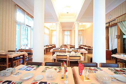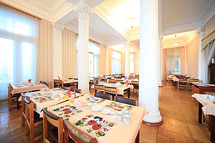 Питание в столовой, обслуживаемой официантами, можно заказывать на выбор – от простого завтрака до трехразового меню. Варианты питания отрабатываются при покупке путевки, цены указаны при заказе полного пансиона.