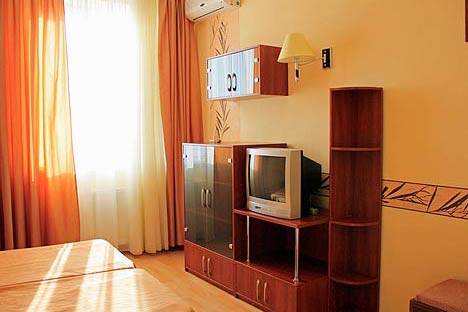 - Полулюкс 1-2-х комнатные 1-2-3-х местные номера. Все номера с евроремонтом, уютный интерьер в пастельных тонах, новая современная мебель, мебельные горки, мягкие уголки, спутниковое ТВ, холодильник, кондиционер. В санузле: душевая кабина, умывальник, туалет. Все номера имеют выход на лоджии.