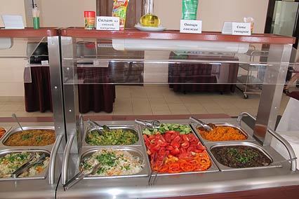 Основное питание (завтрак, обед и ужин) по системе по системе «шведский стол» с 28.04 по 30.09 в ресторане «Афина».