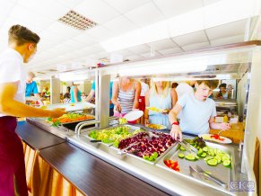 Обеденный зал предлагает 3-х разовое питание по системе «шведский стол»: