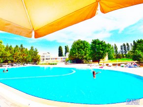 К услугам гостей: открытый подогреваемый бассейн с пресной водой, оборудованный шезлонгами и зонтиками (22*10 м), детской зоной (глубина 0,80 м.), спортивные площадки (волейбольная, футбольное поле), библиотека, магазин, медпункт, прокат игрового и спортивного оборудования, экскурсионное бюро, автостоянка.