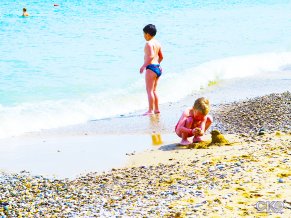 Пляж песчано-галечный. Заход в море плавный, с постепенным изменением глубины, дно песчаное, приятное, поэтому деткам здесь очень комфортно купаться. На территории пляжа постоянно дежурят спасатели.