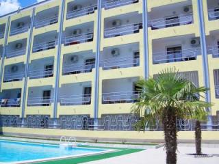- 5-ти местный 3-х комнатный "Suite 3": 2 санузла, ТВ, 2 телефона, электрочайник, радио, большой холодильник, балкон с видом на 3-й корпус, большой балкон на две комнаты с видом на море