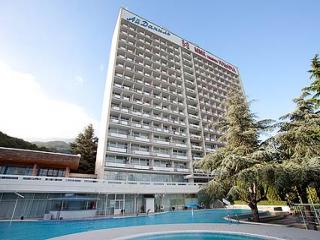 Отдыхали в санатории с 26 июня по 7 июня 2012 года. Хороший отдых по завышенной цене. Жили мы в третьем корпусе (очень удобно, пляж, мед.корпус и столовая рядом), номер DBL (свежий скромный ремонт, полуторная кровать, большой шкаф, плазма, маленький захезанный диванчик, чистая ванная комната). Плюсы: большой благоустроенный парк со скамейками и беседками; вежливый и отзывчивый персонал; разнообразное качественное питание: рыбные и мясные блюда в ассортименте, две каши на завтрак, два вида горячего в обед, красное и белое вино в обед и на ужин, фрукты, овощи, выпечка; ежедневная уборка номера и смена полотенец, смена белья 1 раз в 3 дня; лифт на пляж, бесплатные лежаки и зонтики; строительные объекты огорожены, работы не производились (но лучше уточняйте заранее), детская анимация, Wi-Fi работает нормально. Минусы: минимальное количество процедур по программе "все включено":ванны, душ Шарко, веерный душ, кислородный коктейль (у нас в путевке было указано, что сухие углекислые ванны входят в стоимость, но по приезде выяснилось - ситуация поменялась, доплатите, не великая сумма, но не приятно); SPA-процедуры - одно название (список услуг большой, по факту этого нет, то не делаем, качестко услуг оставляет желать лучшего, место проведения - обычная комната, обстановка к релаксу не распалагает, как в среднестатистическом салоне красоты); полное отсутствие взрослой анимации - СКУКОТИЩА!!! (вечерняя музыкальная программа в ресторане "Итальянский дворик" раз в 4-5 дней, гитара или классический вокал). Контингент отдыхающих - семейные пары до сорока лет с детьми. Общее впечатление от санатория нормальное, один раз можно попробовать. Но бывает и лучше.