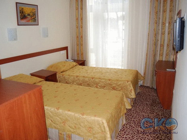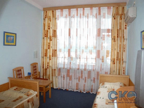 - 3-х местный стандарт №29, корпус №5: три односпальные кровати, санузел (туалет, душ, умывальник), ТВ, холодильник, кондиционер, балкон.