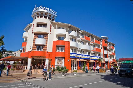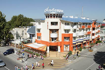 Отель «Альбатрос» -современный и комфортабельный гостиничный комплекс расположеный в 200 метрах от песчаных пляжей г. Анапа. Отель Альбатрос находится на пересечении главных пешеходных улиц города - Горького и Гребенской.