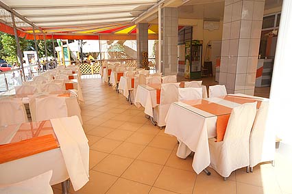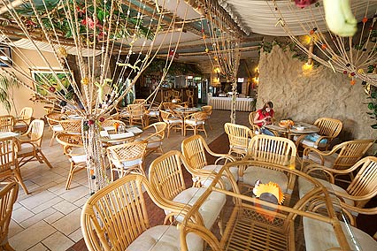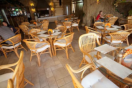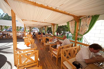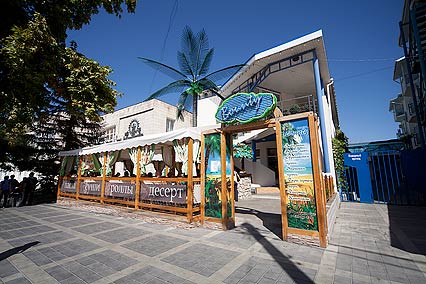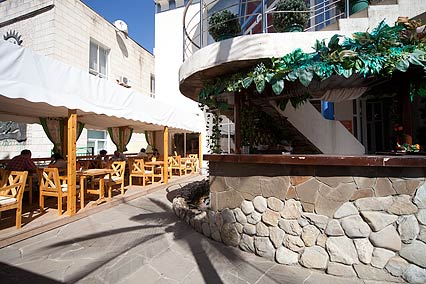 Особое внимание уделяется питанию. Завтрак организован по системе «Шведский стол», он включается в стоимость проживания. Вам предоставляется выбирать блюда европейской, японской и итальянской кухни. А также очень большой выбор блюд, сделанных из морепродуктов Черного моря. Что касается обеда и ужина, о них придется позаботиться самостоятельно. При этом вы всегда сможете заказать комплексный обед и ужин, или же воспользоваться услугами близлежащих кафе и ресторанов. Также можно часть продуктов купить и на местном базаре.