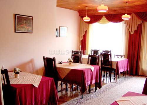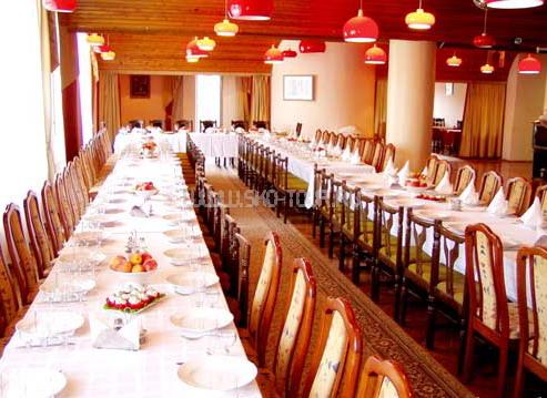 В ресторане (2 зала на 100 и на 20 человек). Русская, европейская и восточная кухни. Завтраки, обеды, бизнес-ланч, карта вин и крепких напитков, доставка заказов в номер (за доп. плату).