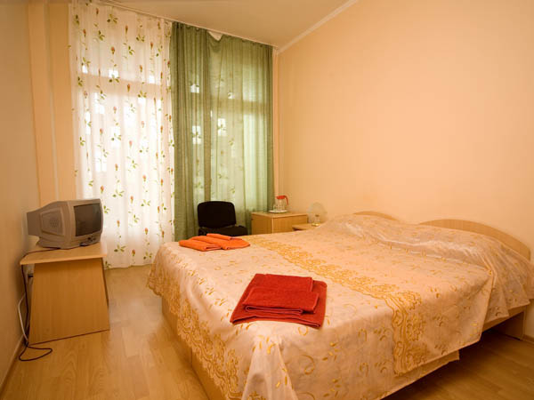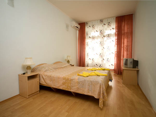 Стандартный четырехместный номер в двух комнатах оборудован мебелью, кондиционером, телевизором и холодильником. В номере ест санузел, ванна и фен. В стандартном трехместном однокомнатном номере есть три полуторные кровати. Раскладной диван, стол, кондиционер, холодильник, телевизор и сейф. В ванной комнате – душ и фен. Во всех номерах, кроме тех, которые расположены на третьем этаже, есть балкон. В номере полулюкс добавляется биде, стол тумба. Есть возможность поставить дополнительное место в висе дивана. В коттеджах есть холодильник, телевизор и кондиционер. Они оборудованы мини-кухнями.