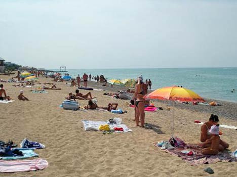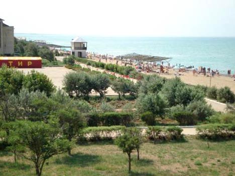 обычный пансионат, безопасность гарантируется - есть охрана, номера - все с удобствами, на любой кошелек. питание среднее, ничего особенного, кому нужны фрукты - напротив столовой местные или возле санатория "полтава". на территории несколько торговых точек, кафе - шашлык, спиртное и кто что хочет. - прекрасный песчаный пляж рядом, плохо - нет тентов - развлечений особых нет, для детей почти каждый день танцы на площадке перед клубом (раньше это был пионерлагерь) - кто хочет подлечиться: рядом санаторий "полтава", но все очень дорого