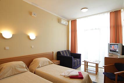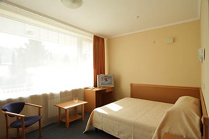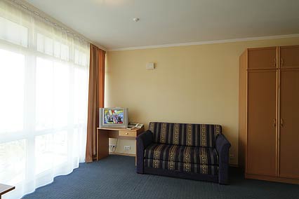 - 1-2-местный номер "полулюкс" (24 м2) с удобствами (туалет, умывальник, ванна). В номере: набор мебели, ТВ, холодильник, кондиционер, застекленный французский балкон.