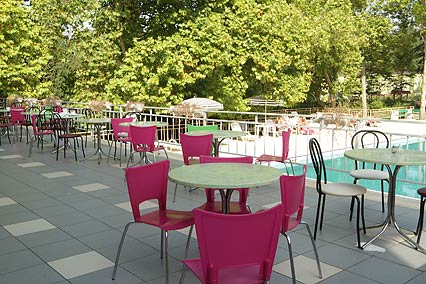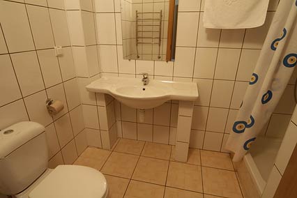 - 2-местный стандартный номер (16/20 м2): санузел, душ, набор мебели, ТВ, кондиционер, застекленный витраж с французским балконом.