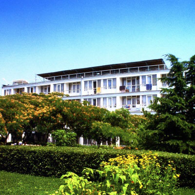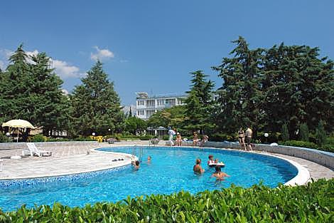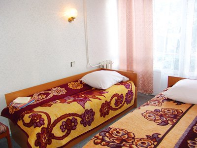 Два четырехэтажных жилых корпуса предлагают 2-3-хместные номера с удобствами. От корпусов до моря – 600 м. На территории находятся объекты инфраструктуры: столовая, открытый бассейн с пресной водой, спортивные и детские площадки, бар, бильярд, тренажерный зал, настольный теннис, видеозал, библиотека, камера хранения, конференц-зал. Работают медпункт и массажный кабинет.