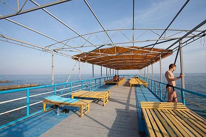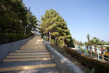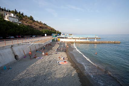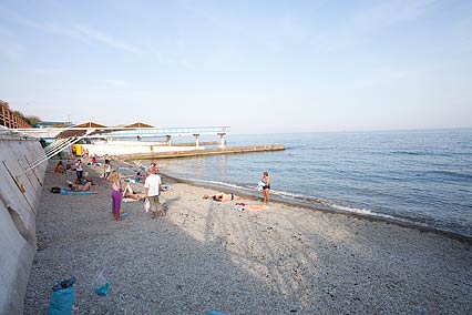 На пляже: пляж собственный галечный в 300 м. от пансионата, оборудован теневой зоной и двумя соляриями, вход только по карточкам отдыхающих, лежаки - бесплатно, прокат катамаранов, шезлонгов, скутеров. Организована бесплатная доставка автобусом пансионата с пляжа в первой половине дня. Кроме этого, за дополнительную плату, курсируют микроавтобусы на пляж и обратно в течение всего дня