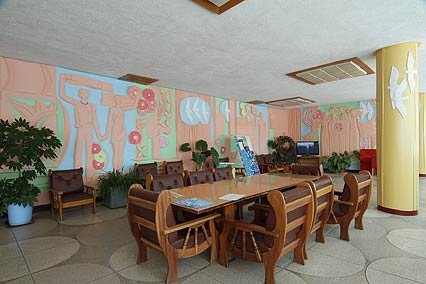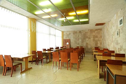 Номера – 2-х-3-хместные, стандартные и улучшенные. Все 79 номеров оборудованы кондиционерами. В здании работает лифт. Питаются отдыхающие в столовой пансионата три раза в день, по комплексному меню с обслуживанием официантами.