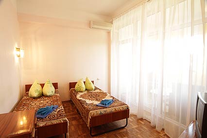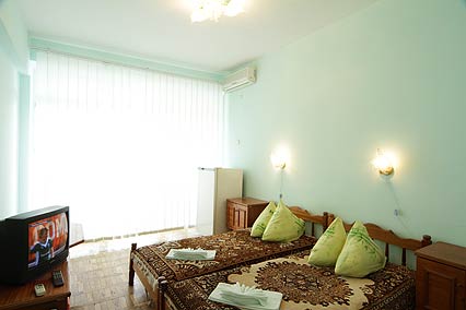 - 2-х местный: санузел, душевая кабина, индивидуальный кондиционер, телевизор, холодильник, балкон с видом на море, южная сторона