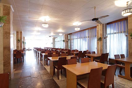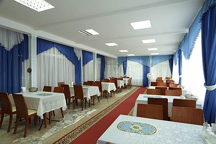 3-х разовое по заказному меню. Обеденный зал столовой оснащен кондиционером. Диетическое питание (4 вида диеты), по четвергам проводятся дни национальной кухни. Обслуживание официантами.