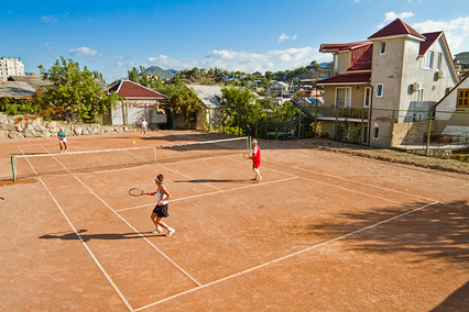 В пансионате не забыли и про любителей активного отдыха, к услугам которых кроме тренажерного зала спортзал, волейбольная и баскетбольная площадки, а также теннисный корт.