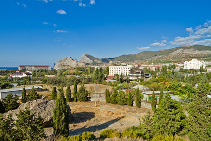 Так как пансионат расположен на возвышенности, из окон открывается великолепный вид на Судакскую бухту, Генуэзскую крепость, живописные горы.