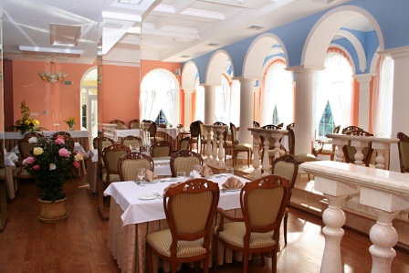 Особое место в отеле отведено винному ресторану. Здесь примечательно все: шикарный интерьер, изысканная европейская кухня, живая музыка, приятное обслуживание. В отеле также организовано питание по принципу полупансион и полный пансион, составляется индивидуальное меню.