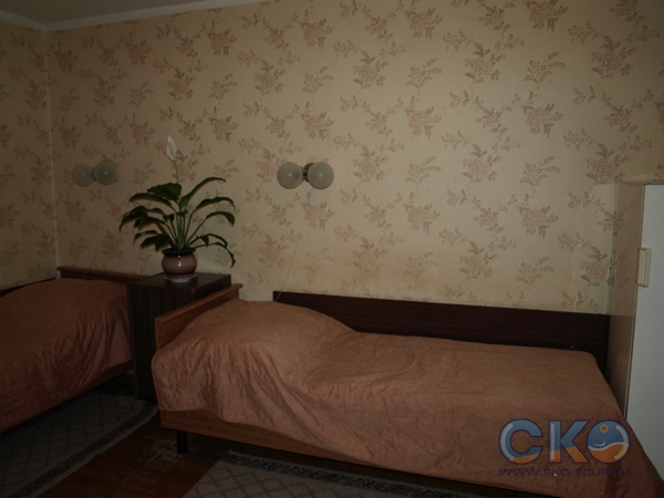 - Четырехместный двухкомнатный номер "Стандартный" (после ремонта, в одной комнате три спальных места, во второй - одно, телевизор, холодильник, санузел, душ ).