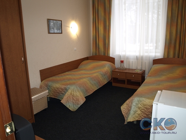 - *Двухместный номер "Стандарт" (12 - 15 кв. м) с удобствами (душ, умывальник, туалет), телевизор, холодильник. Дополнительное место (кровать или раскладушка).