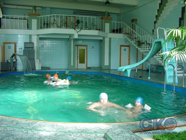Детям: в бассейне маленькая купель для малышей, детская комната с воспитателем (летом и в дни каникул), детская площадка.