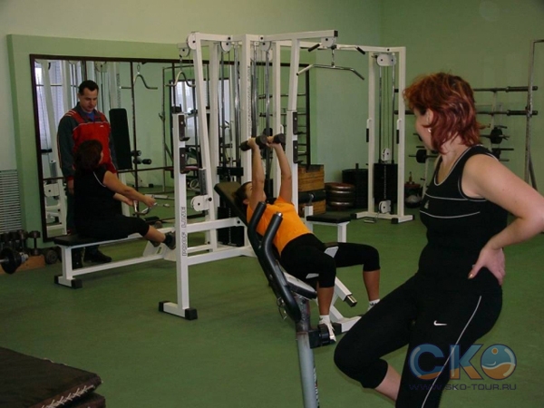 Спорт: крытый бассейн 6х12 м с горкой и водопадом, тренажерный зал, большой спортзал (баскетбол, волейбол, теннис), настольный теннис, прокат спортинвентаря (велосипеды, ролики, лыжи, санки, коньки), открытый теннисный корт, зимой – каток.
