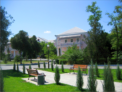Сакский клинический санаторий им. Н.И. Пирогова располагается на территории большого парка, здесь же произрастают редкие деревья и расположены комплексы фонтанов.