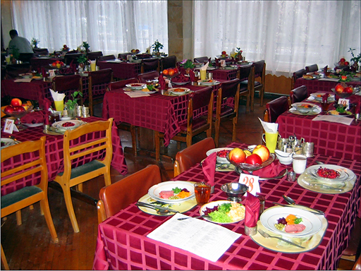 В санатории ЦВКС имени Н.И. Пирогова в Саках предоставляется 3-х разовое заказное (по назначению врача – диетическое) питание. Обслуживание официантами.