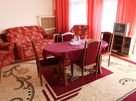 Отдыхающим предлагается поселиться в одном из трех жилых зданий. Выбрать можно номер категории «люкс», «стандарт» или «полулюкс». Жилые комнаты отличаются наличием евроремонта, наличием санузла и туалета, холодильника и телевизора. В двухкомнатном номере категории люкс есть электрический чайник, телефон, посуда. Из окон можно наблюдать красивейшие виды на горы или на парк. В каждом номере есть столовая, в которой отдыхающие питаются три раза в день, по меню. Все блюда диетические, готовятся по специальным рецептам.