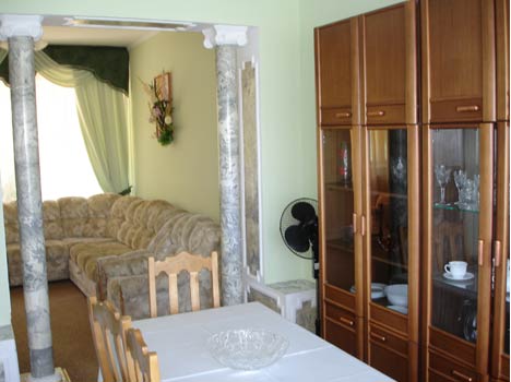 - «Люкс 3-х комнатный» с балконом - (Площадь 51,2 кв.м. В номере двуспальная кровать, шкаф-купе, телевизор, мягкая мебель, торшер, две прикроватные тумбочки, обеденный стол, горка для посуды, утюг с гладильной доской, 4 стула, холодильник, микроволновая печь, фен, сейф.)
