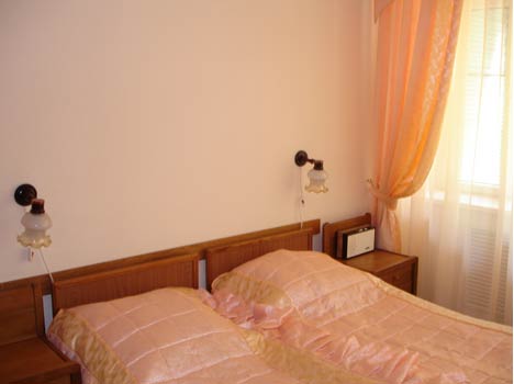 - «Стандарт дабл/твин» - 2-хместный с балконом (Площадь номера 19 – 19,5кв.м. В номере одна двуспальная кровать, шкаф, две тумбочки, два стула, стол, холодильник, телевизор, фен, сейф. Балкон с двумя пластиковыми стульями и пластиковым столом.)