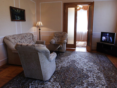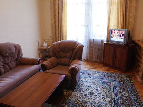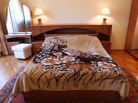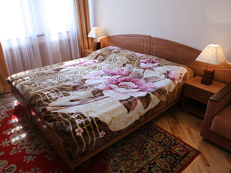 - 2-х местный, трехкомнатный высшей категории "люкс": гостиная, спальня, кабинет, балкон, санузел, ванная комната, телевизор, видеомагнитофон, холодильник, телефон