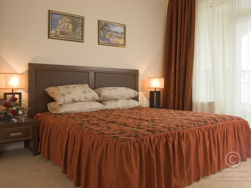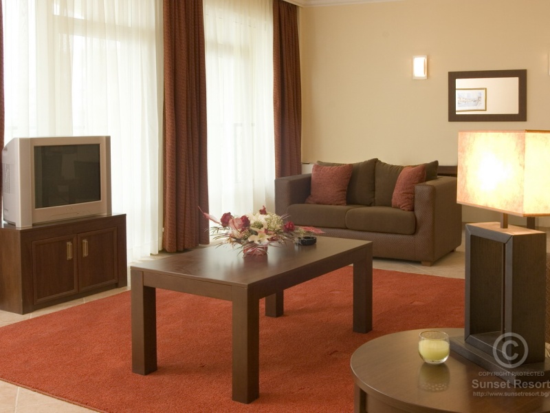 - Ap6pax (110 кв.м.) – 3 спальни, гостиная с мягкой мебелью (межкомнатная дверь), двуспальная кровать/две отдельные кровати, доп. место - диван-кровать, кондиционер, TV SAT, телефон, кухонный бокс, холодильник, сейф (доп. оплата), балкон, ванна, душ, фен, косметический набор в ванной, пол – ковролин, плитка.