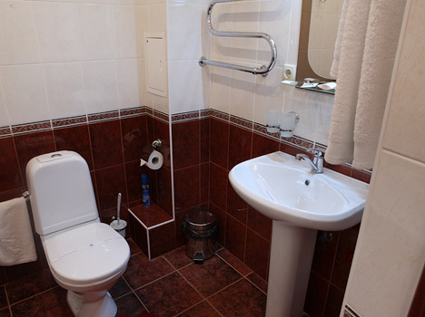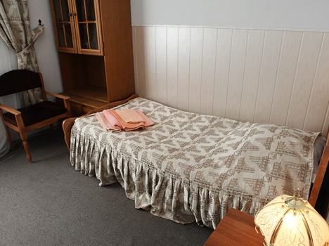 - одноместные средней площадью 12 кв. м: все удобства (ванна, туалет), холодильник, телевизор