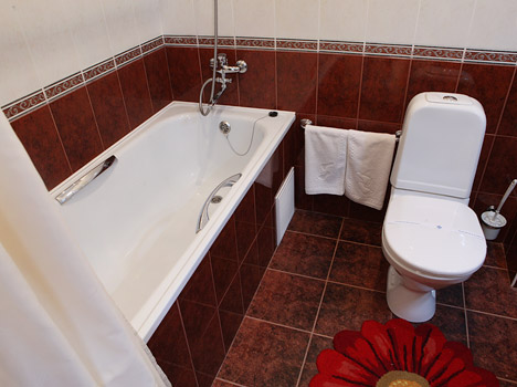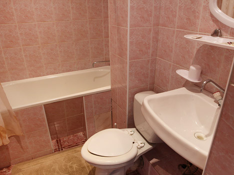 - двухместные средней площадью 16 кв. м: все удобства (ванна, туалет), холодильник, телевизор