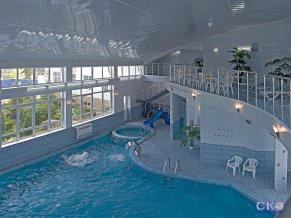 мини-аквапарк с водными горками, крытый бассейн, детский бассейн-лягушатник, летнее кафе, дискотека, настольный теннис, волейбол, бильярд, прокат спортивного инвентаря, детская площадка, детская комната, сауна (финская, турецкая баня), тренажерный зал, три конференц-зала, библиотека, сейф.