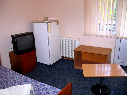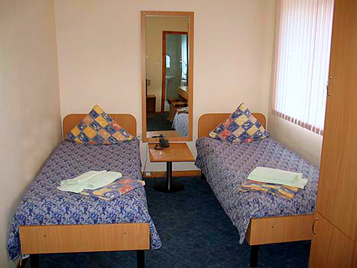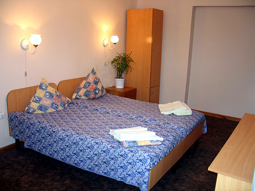 2-х местный 1-комнатный номер (12.5 кв.м) – санузел с душевой кабиной/ванной, кровати, прикроватные тумбочки, кресла, журнальный столик, ТВ, холодильник, прихожая. Доп. место – 1 (еврораскладушка).;