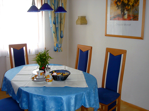 В пансионе: холл, комната для завтраков, лыжехранилище