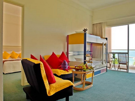 2 Baby Suite (площадь 36 кв. м, в спальне кровать king size для взрослых и двухэтажная кровать для детей, балкон, вид на сад);
