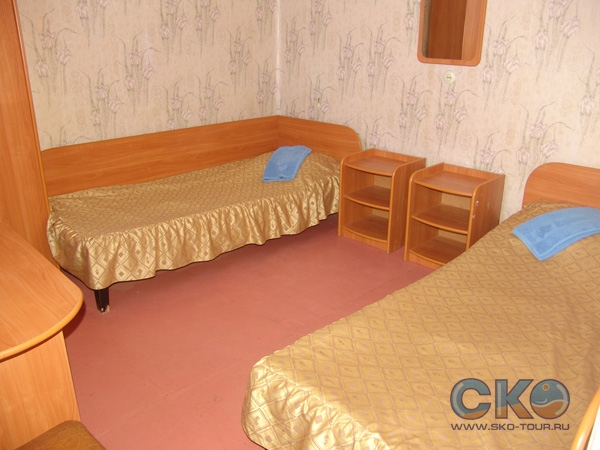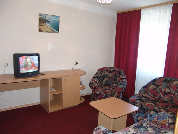 - 2-местный 2-комнатный "полулюкс" (16/12 м2): совмещённый санузел с душем. В номере: набор новой мебели, телевизор, холодильник, кондиционер; лоджия с видом на море или на горы.
