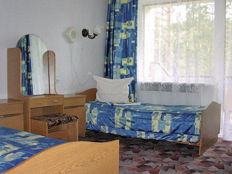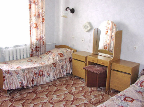 - 2-х местный 1-но комнатный номер: 2 кровати, шкаф в прихожей, набор посуды, стол, тумбочки, стулья, телевизор, холодильник.