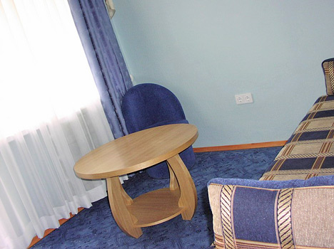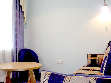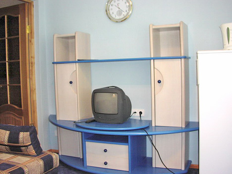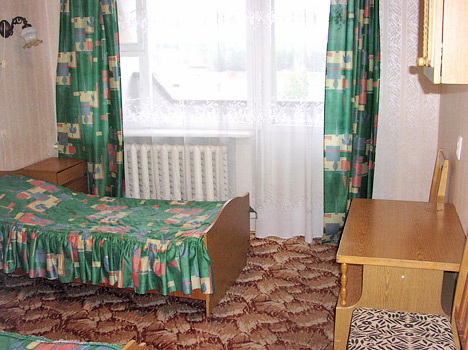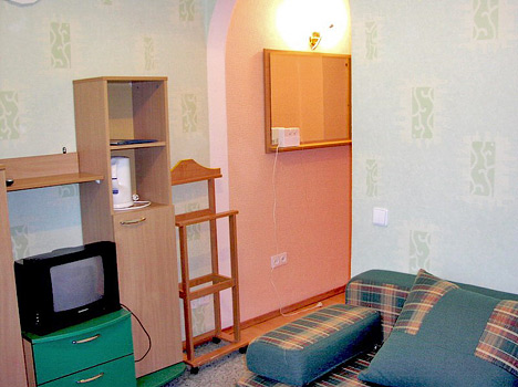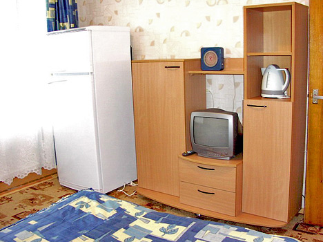 - 1-но местный 1-но комнатный номер: кровать, шкаф, стол, тумбочка, стулья, набор посуды, телевизор со спутниковым телевидением, холодильник , электрочайник, утюг, сушилки для белья.