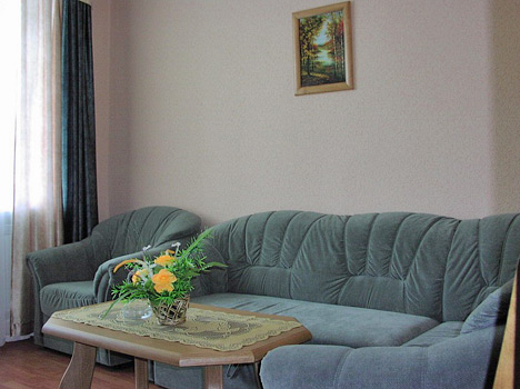 - 2-х местный 2-х комнатный номер: в гостинной набор мягкой мебели, телевизор, телефон, холодильник, набор посуды; в спальне двухспальная кровать, набор мебели.