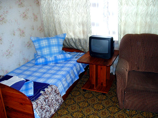 Отдыхающие размещаются в шестиэтажных корпусах с лифтами. 125 двухместных номеров, 24 - одноместных, 3 "люкса". Корпус № 2 рассчитан на 250 детских мест; душ и туалет – в блоке. Принимают детей с 4 лет по путевкам "Родитель с ребенком", с 7 лет - без родителей, в группах под присмотром воспитателей