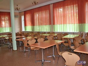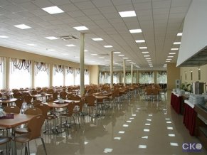 Питание в пансионате можно назвать сытным и по южному щедрым. Благоустроенная столовая рассчитана на 450 мест. В зале размещены столики и каждый рассчитан на шесть человек. Предусмотрено трехразовое питание (шведский стол), которое включает большое разнообразие предлагаемых блюд. Словом, и взрослый, и ребенок найдет блюдо по вкусу.