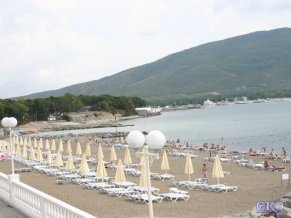 Пляж: собственный оборудованный мелкогалечный пляж, расположенный в 25 метрах от пансионата, протяженностью 280 метров, ширина береговой линии составляет 40 метров; лежаки и зонты на пляже – бесплатно.