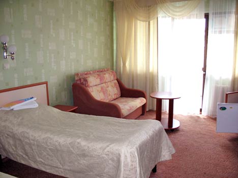 - Двухместные однокомнатные номера (12 кв. м) повышенной комфортности (душ, туалет, раковина, телевизор, холодильник, телефон, кондиционер, балкон с видом на море).